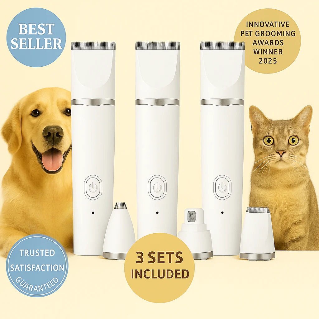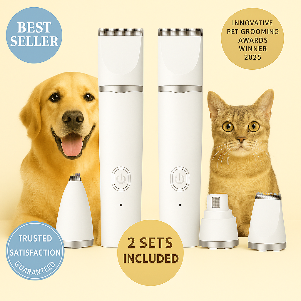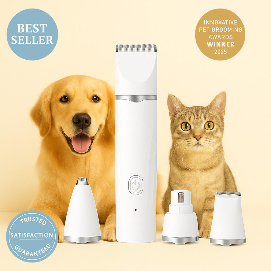 Meet the PawLuxe™ GroomPro 4-in-1 Grooming Kit — your ultimate pet grooming tool for professional-quality results at home. Whether you’re trimming, de-shedding, or shaping, this ergonomic, low-noise clipper is designed to keep your furry friend calm and comfortable.