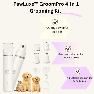 The Better Way to Groom: Skip the appointments, travel, and high costs. PawLuxe™ is the all-in-one kit that replaces expensive salon visits. Give your pet a stress-free grooming experience in the comfort of your home. Discover how PawLuxe™ offers better value, comfort, and convenience for a lifetime of care.