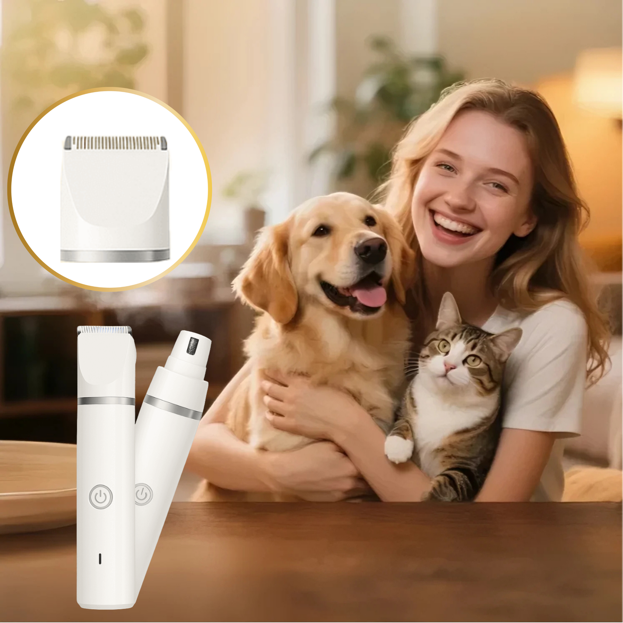 PawLuxe™ GroomPro – Quiet, cordless trimming with 4 adjustable heads for a stress-free grooming session.